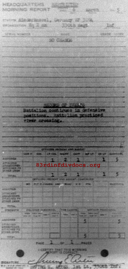 Morning report HQ2BN/330 for March 6, 1945