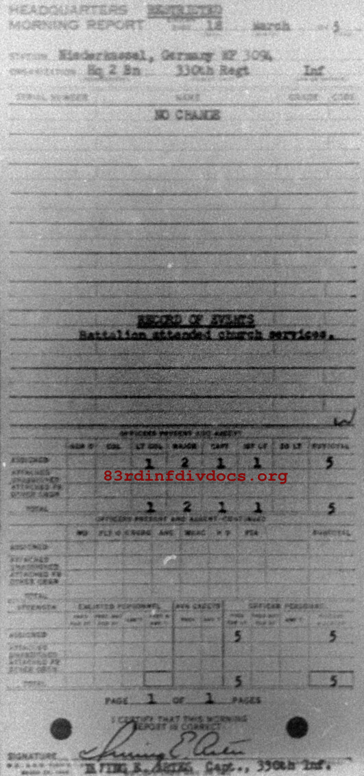 Morning report HQ2BN/330 for March 18, 1945