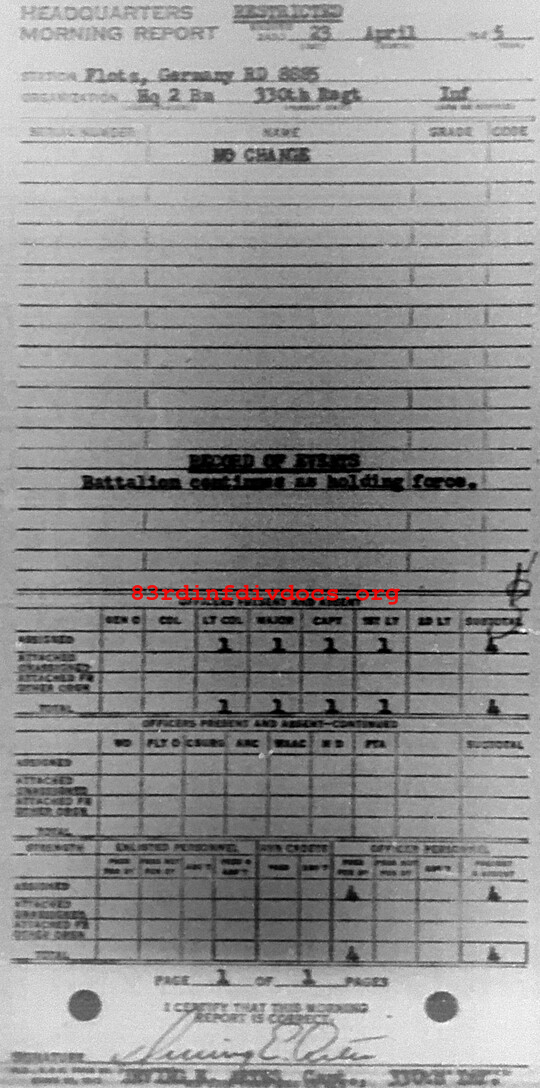 Morning report HQ2BN/330 for April 23, 1945