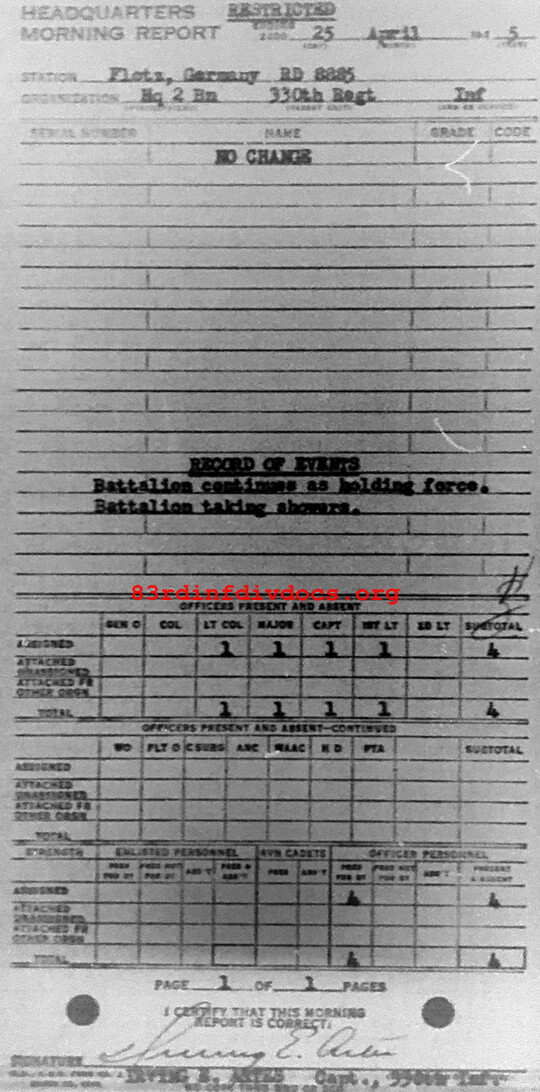 Morning report HQ2BN/330 for April 25, 1945