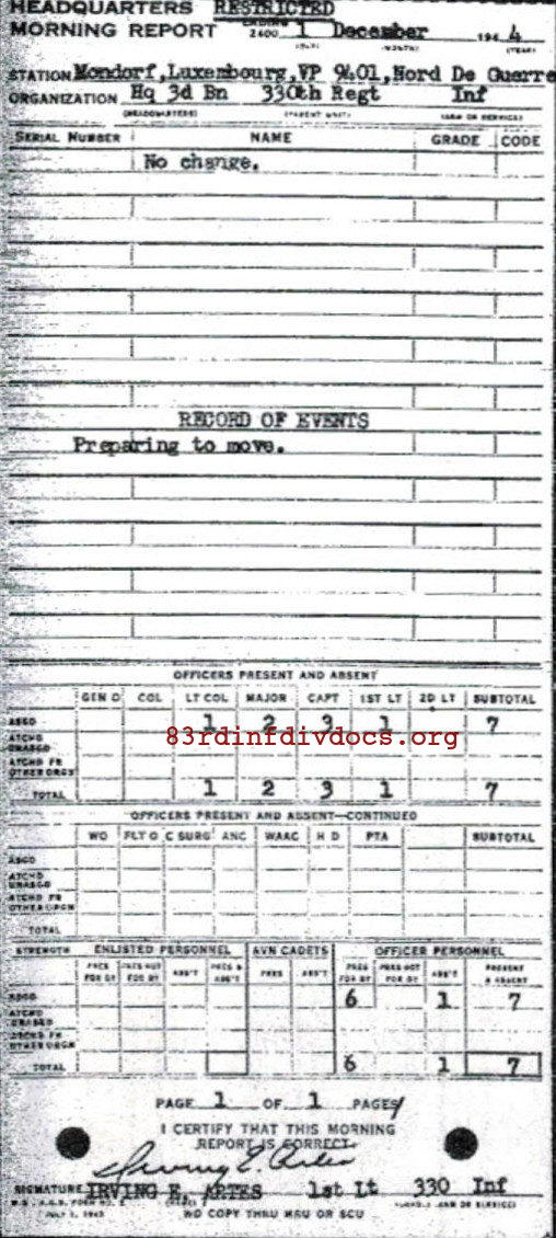 Morning report HQ3BN/330 for December 1, 1944