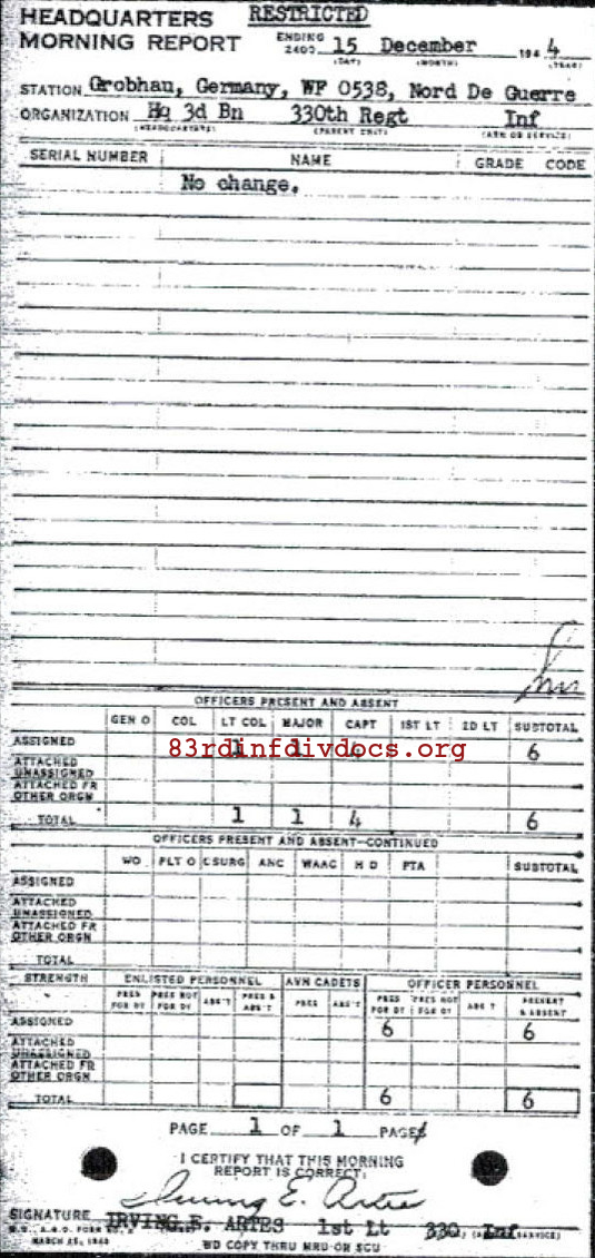 Morning report HQ3BN/330 for December 15, 1944