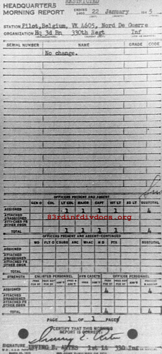 Morning report HQ3BN/330 for January 22, 1945