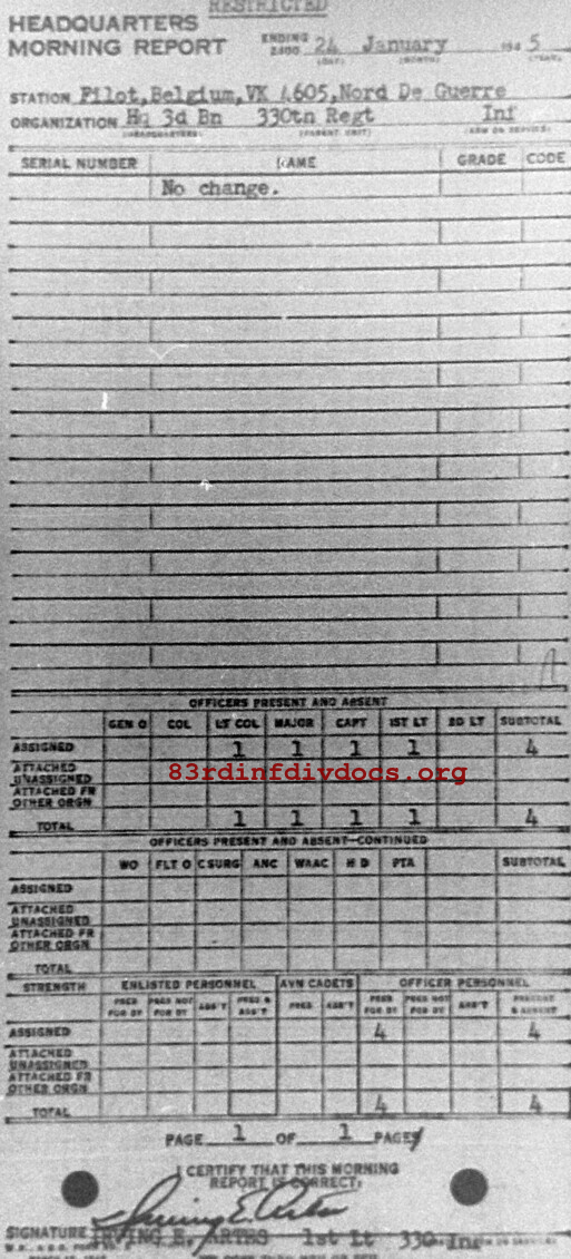 Morning report HQ3BN/330 for January 24, 1945