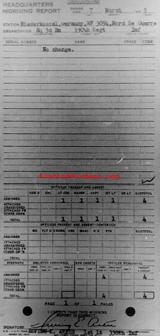 Morning report HQ3BN/330 for March 7, 1945