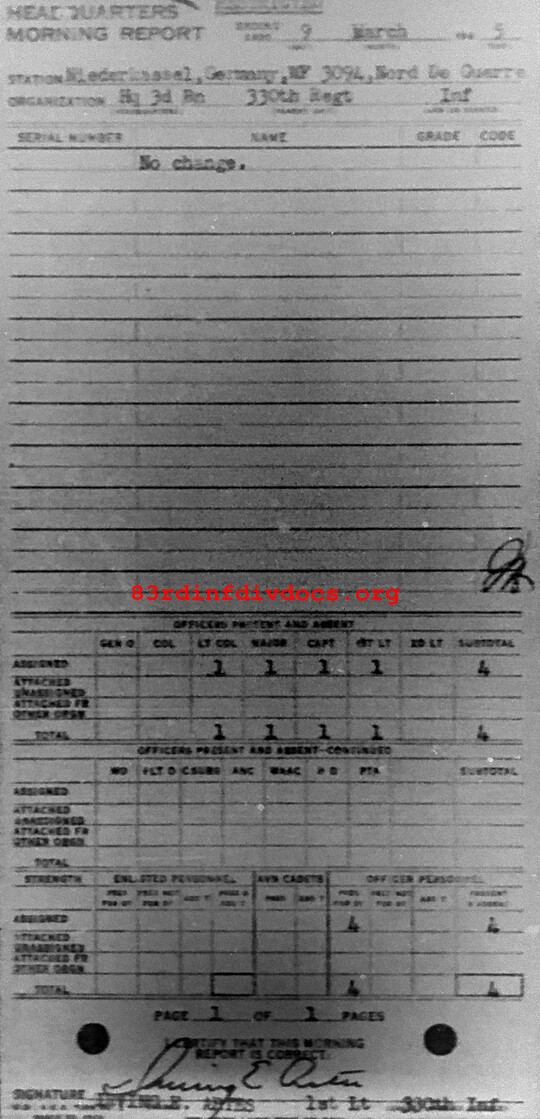Morning report HQ3BN/330 for March 9, 1945