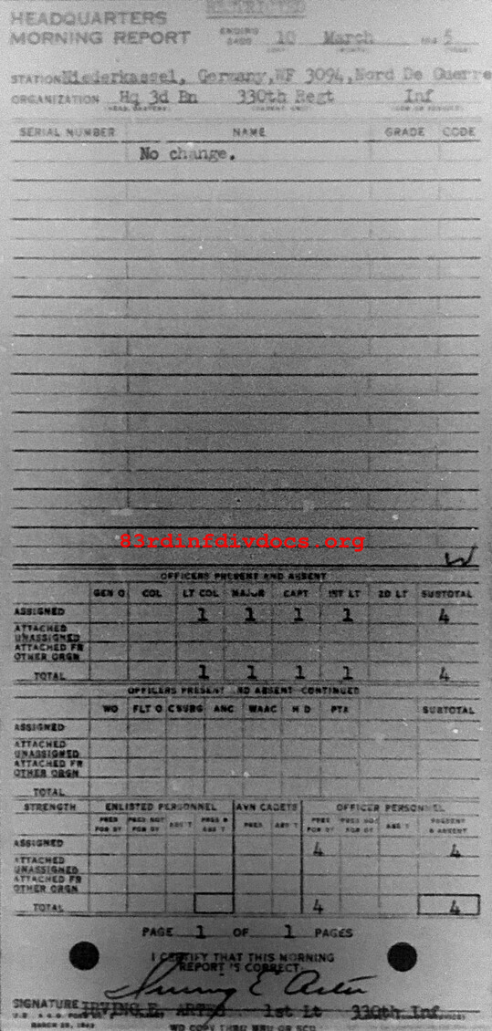 Morning report HQ3BN/330 for March 10, 1945