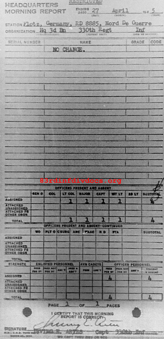 Morning report HQ3BN/330 for April 27, 1945