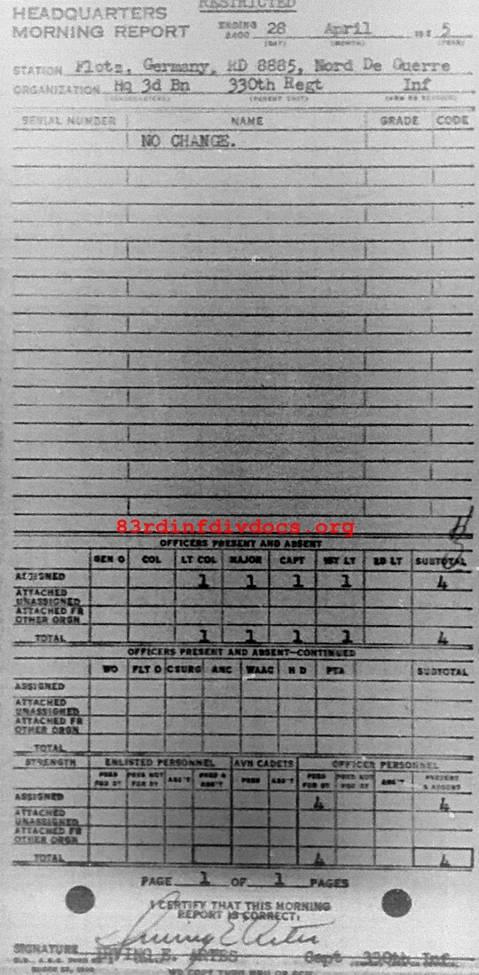Morning report HQ3BN/330 for April 28, 1945