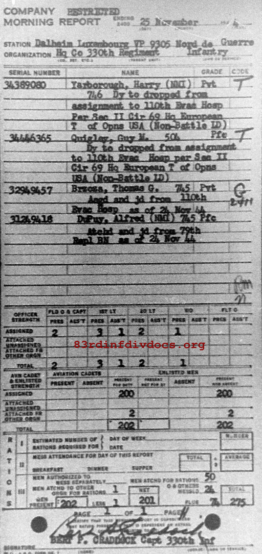 Morning report HQCO/330 for November 25, 1944