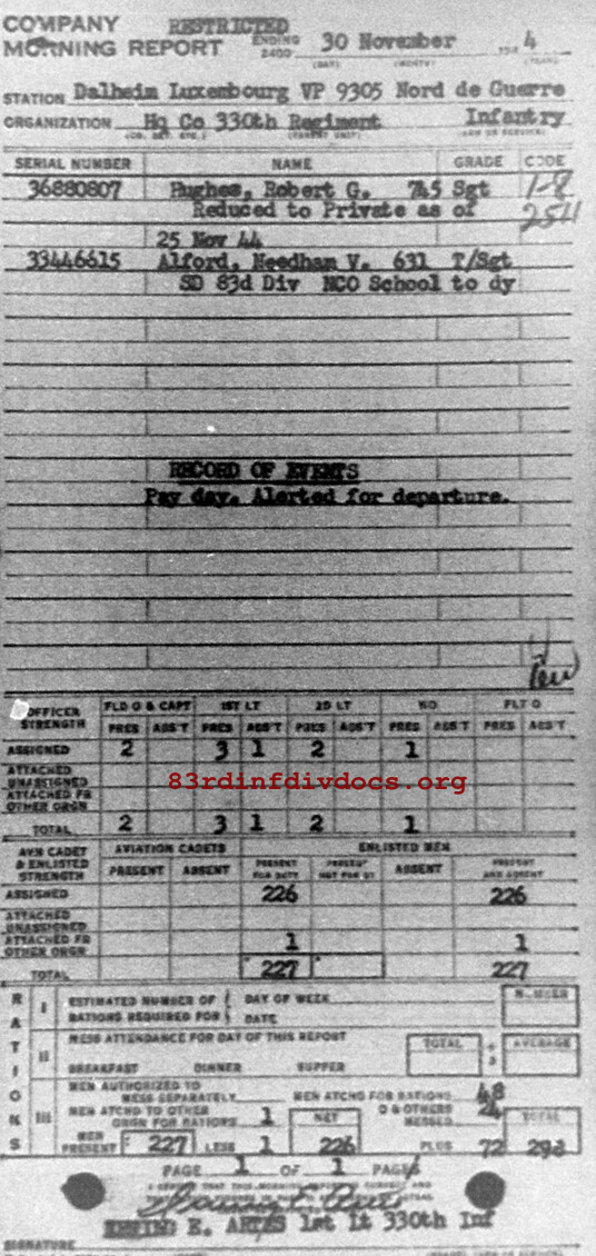 Morning report HQCO/330 for November 30, 1944