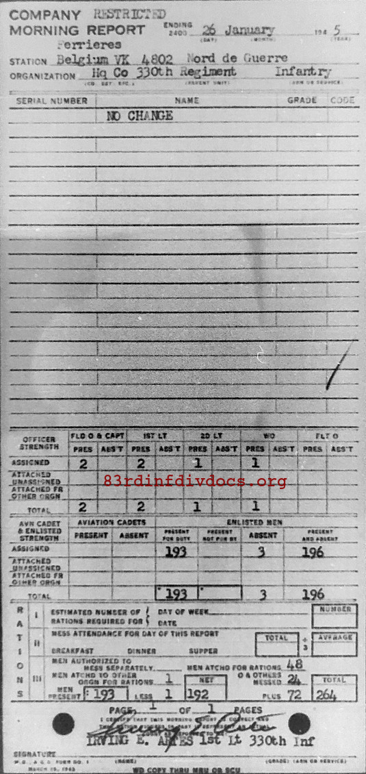 Morning report HQCO/330 for January 26, 1945