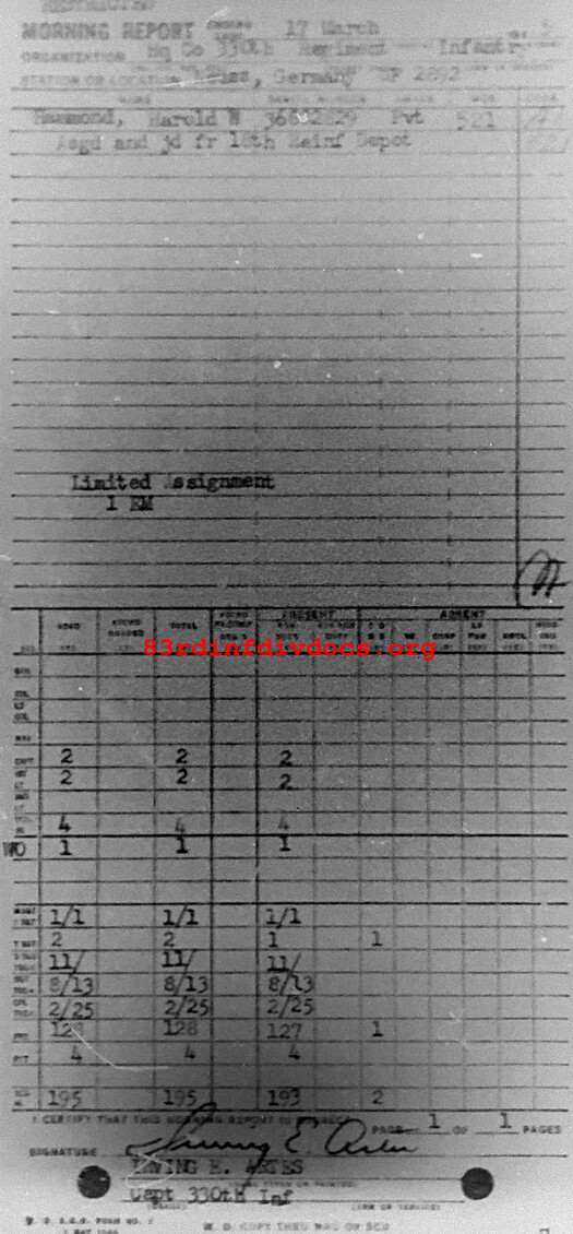 Morning report HQCO/330 for March 17, 1945