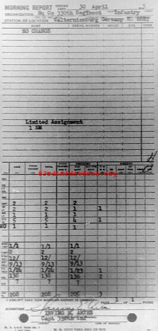 Morning report HQCO/330 for April 30, 1945