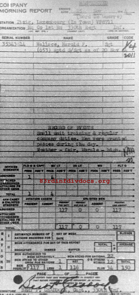 Small unit trianing & regular company duties. Men were granted passes during the day. Weather - fair. Morale - high.