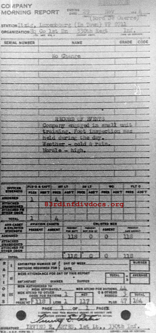 Companies engaged in small unit training. Foot inspection was held during the day. Weather - cold & rain. Morale - high.