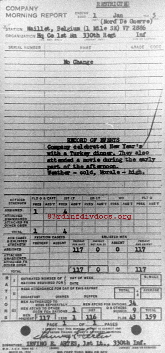 Morning report HQCO1BN/330 for January 1, 1945