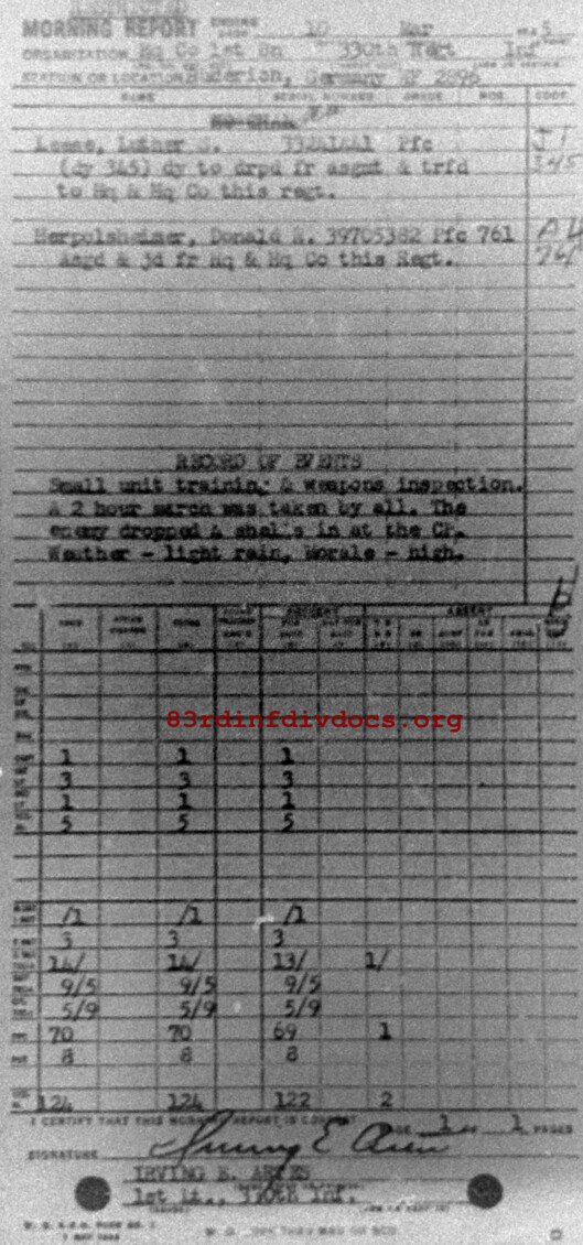 Morning report HQCO1BN/330 for March 10, 1945