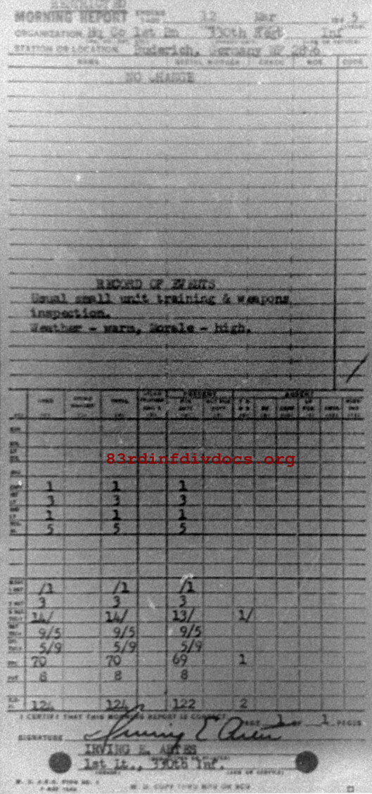Morning report HQCO1BN/330 for March 12, 1945