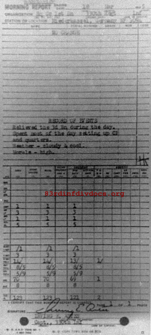 Morning report HQCO1BN/330 for March 18, 1945