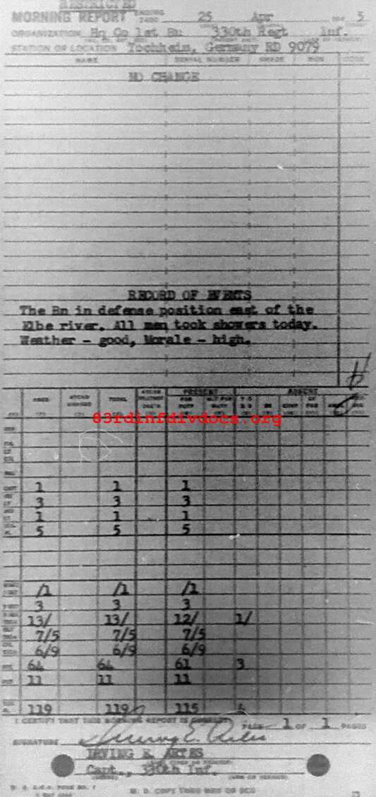 Morning report HQCO1BN/330 for April 25, 1945