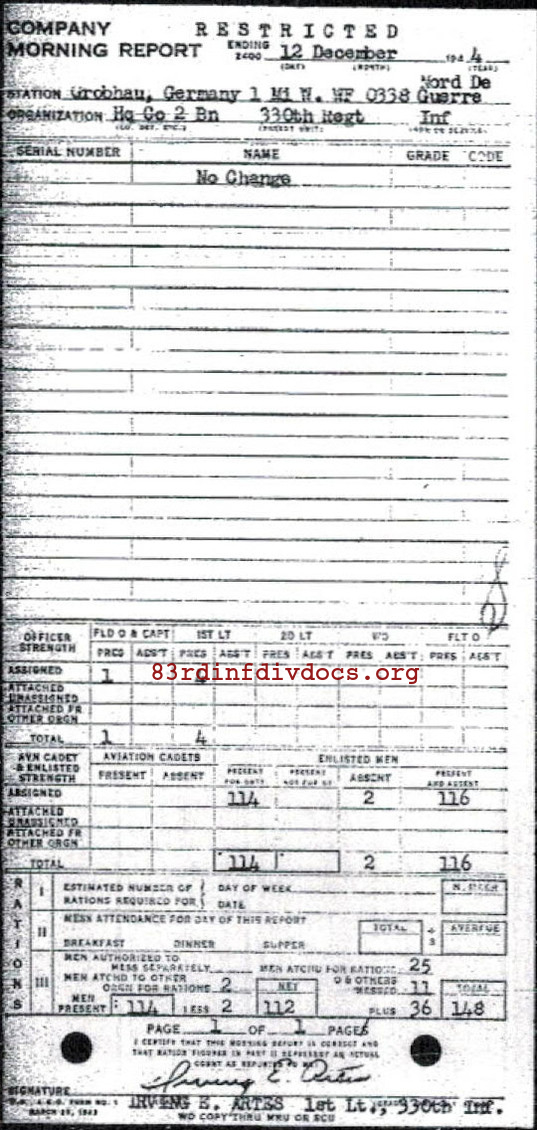 Morning report HQCO2BN/330 for December 12, 1944