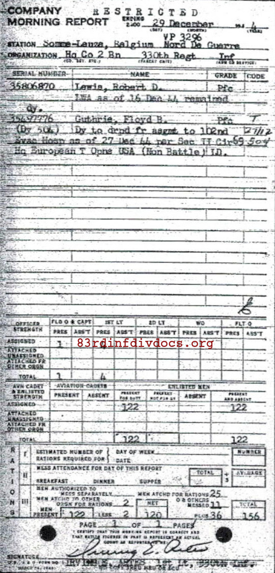 Morning report HQCO2BN/330 for December 29, 1944
