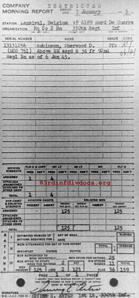 Morning report HQCO2BN/330 for January 7, 1945