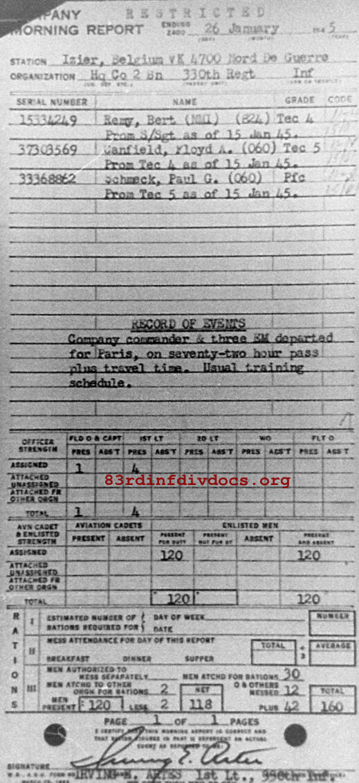 Morning report HQCO2BN/330 for January 26, 1945