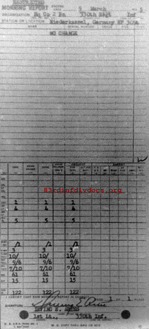 Morning report HQCO2BN/330 for March 9, 1945