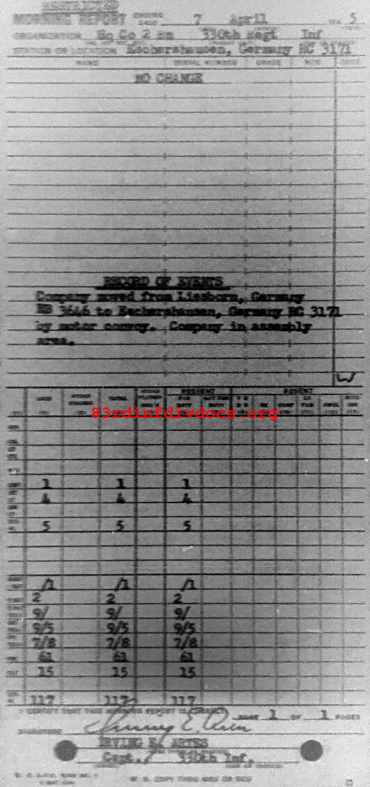 Morning report HQCO2BN/330 for April 7, 1945
