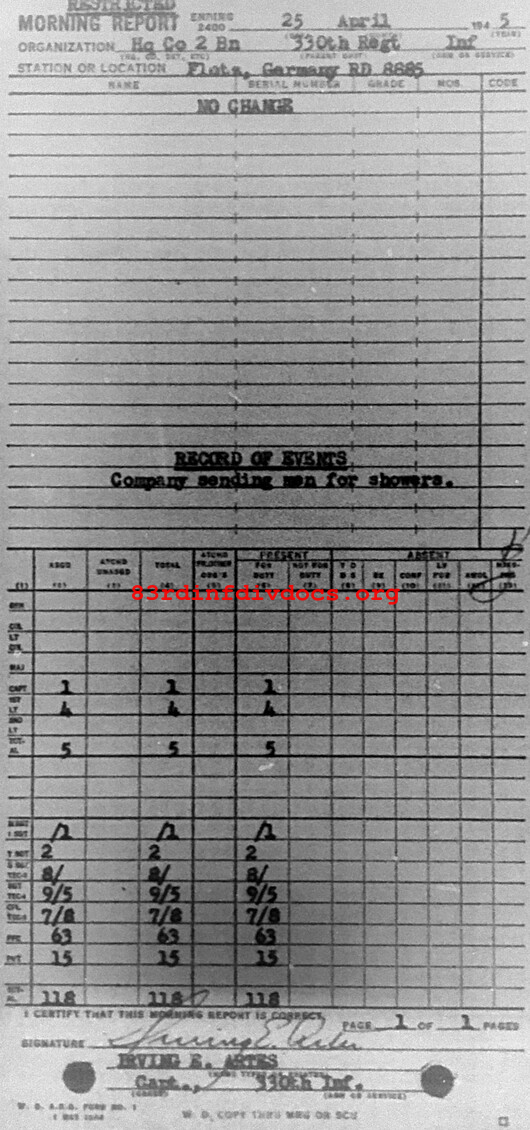 Morning report HQCO2BN/330 for April 25, 1945