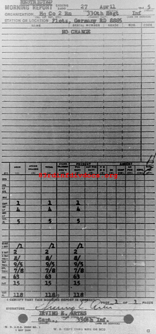 Morning report HQCO2BN/330 for April 27, 1945