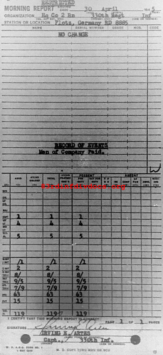 Morning report HQCO2BN/330 for April 30, 1945