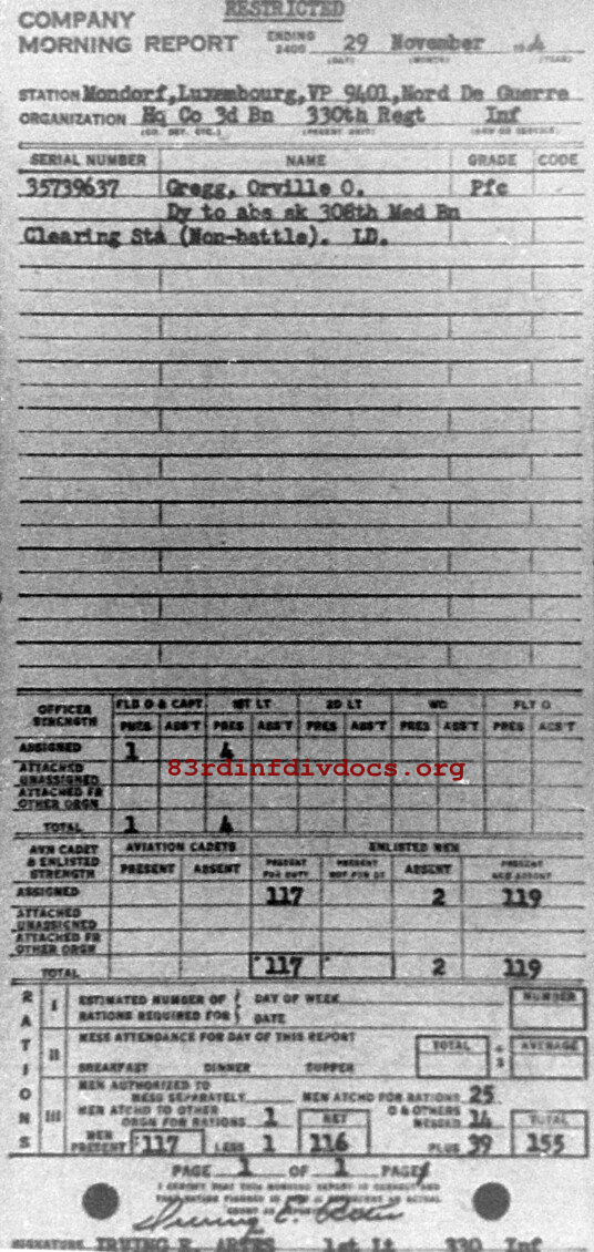 Morning report HQCO3BN/330 for November 29, 1944