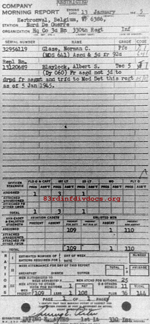 Morning report HQCO3BN/330 for January 13, 1945