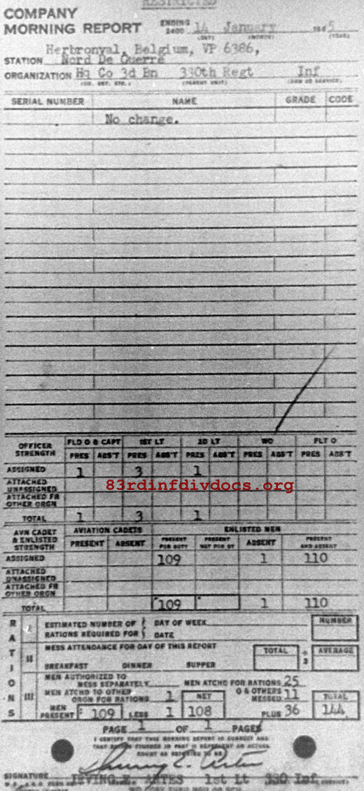 Morning report HQCO3BN/330 for January 14, 1945