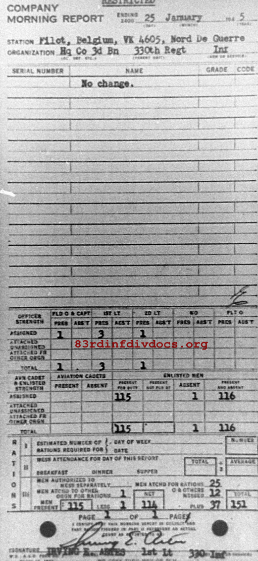 Morning report HQCO3BN/330 for January 25, 1945