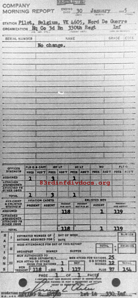 Morning report HQCO3BN/330 for January 30, 1945
