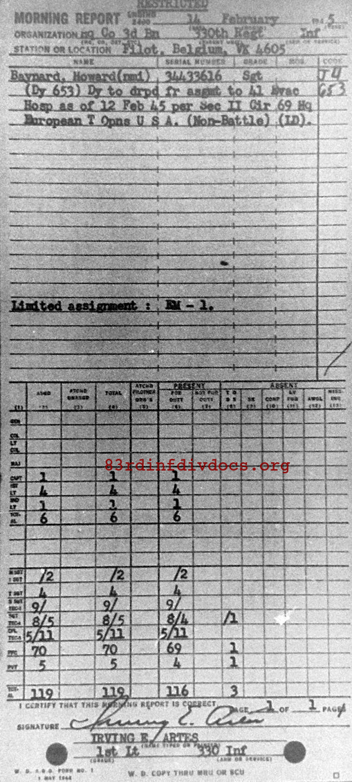 Morning report HQCO3BN/330 for February 14, 1945