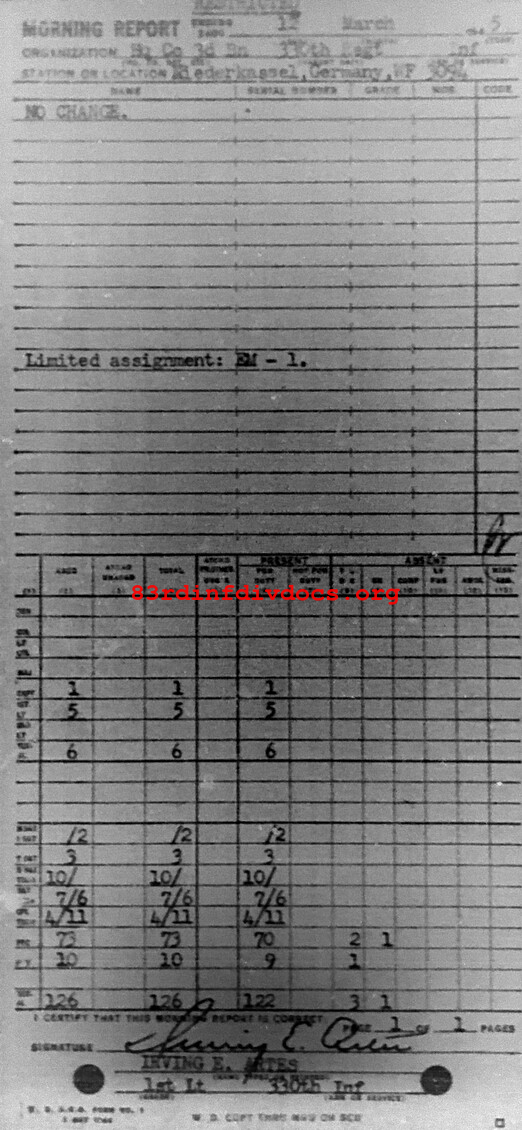 Morning report HQCO3BN/330 for March 12, 1945