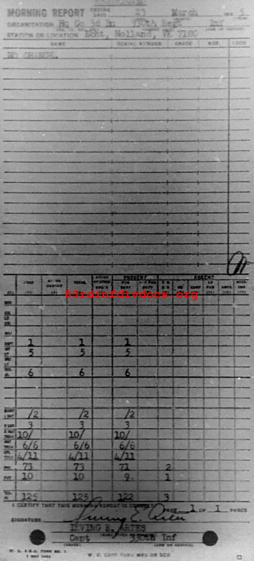 Morning report HQCO3BN/330 for March 23, 1945