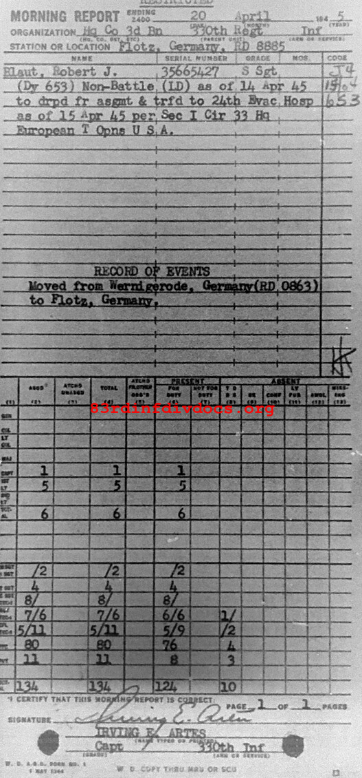 Morning report HQCO3BN/330 for April 20, 1945