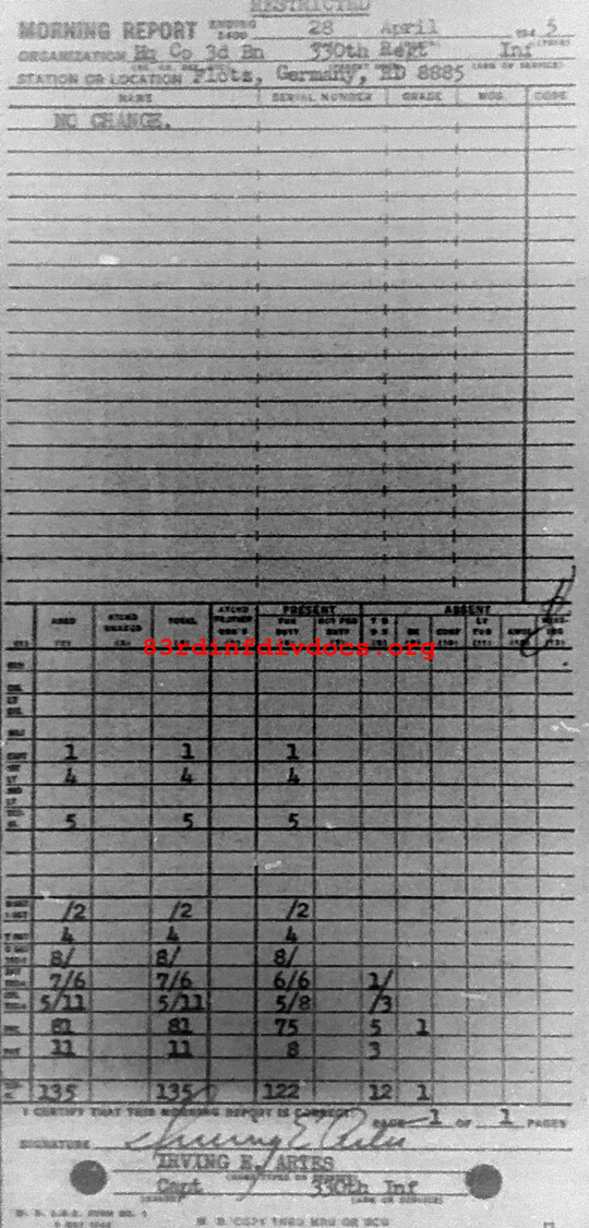 Morning report HQCO3BN/330 for April 28, 1945