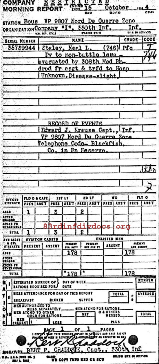 Edward J Krause, Capt., Inf. vP9807 NdG. Telephone Code - Blackfish. Co in Bn Reserve.