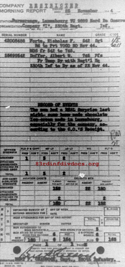 The men had a REAL surprise last night - some home made chocolate Ice-cream made in Luxembourg especially for the company, according to the CO's receipt.