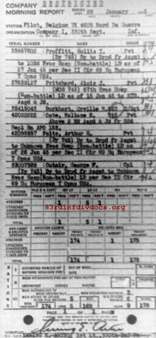 Morning report I/330 for January 28, 1945