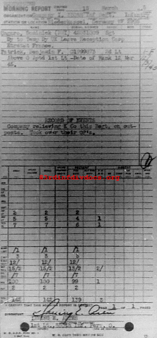 Company relieving K Co this Regt, on outposts. Took over their OP's.