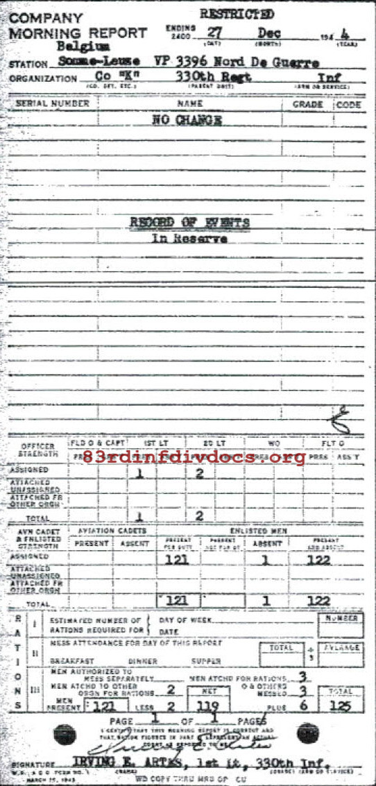 Morning report K/330 for December 27, 1944