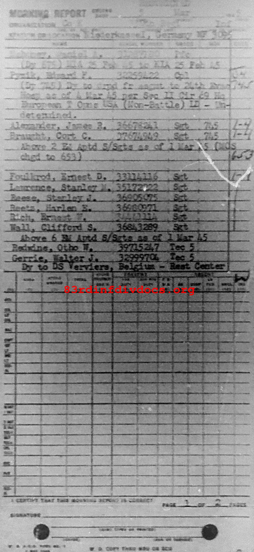 Morning report K/330 for March 5, 1945